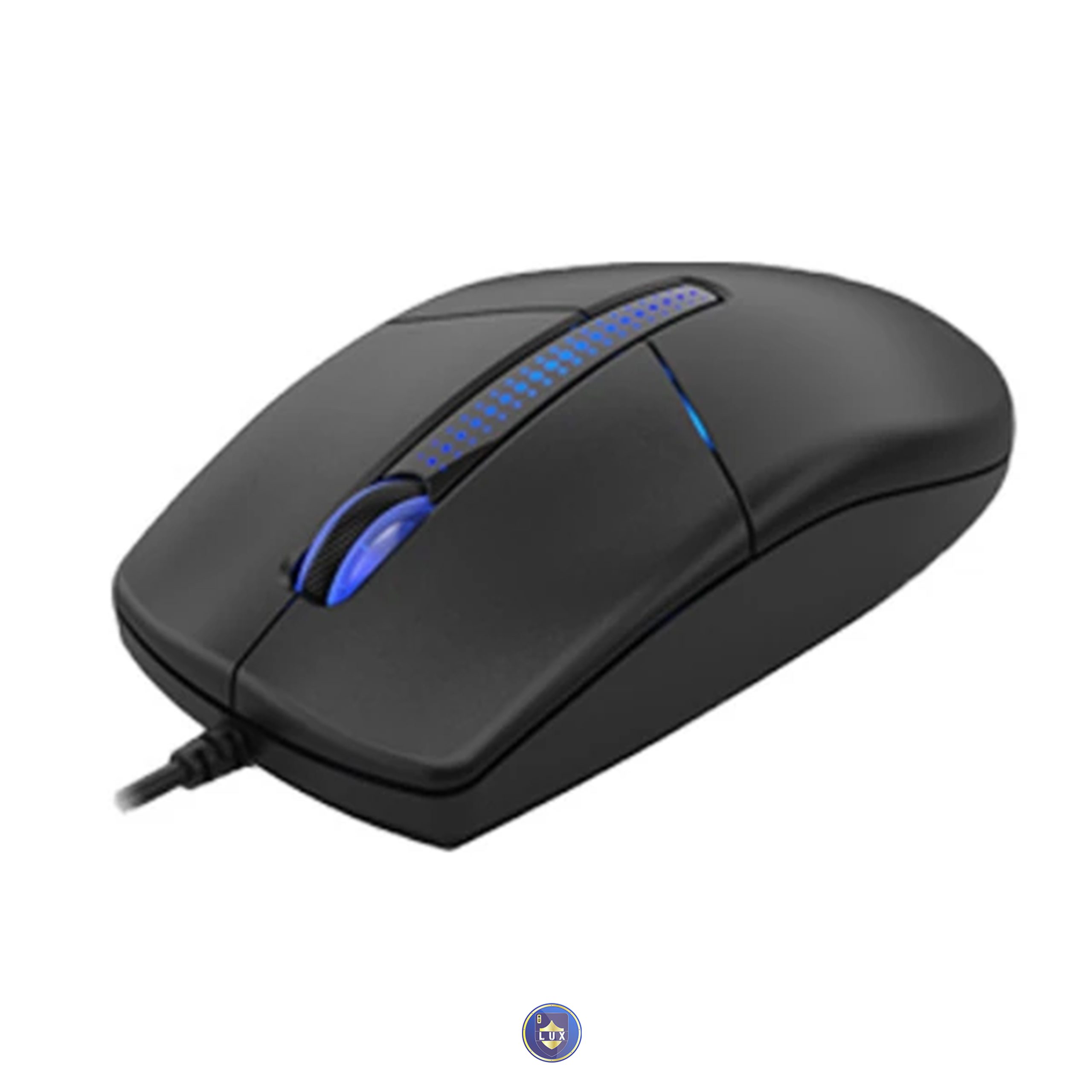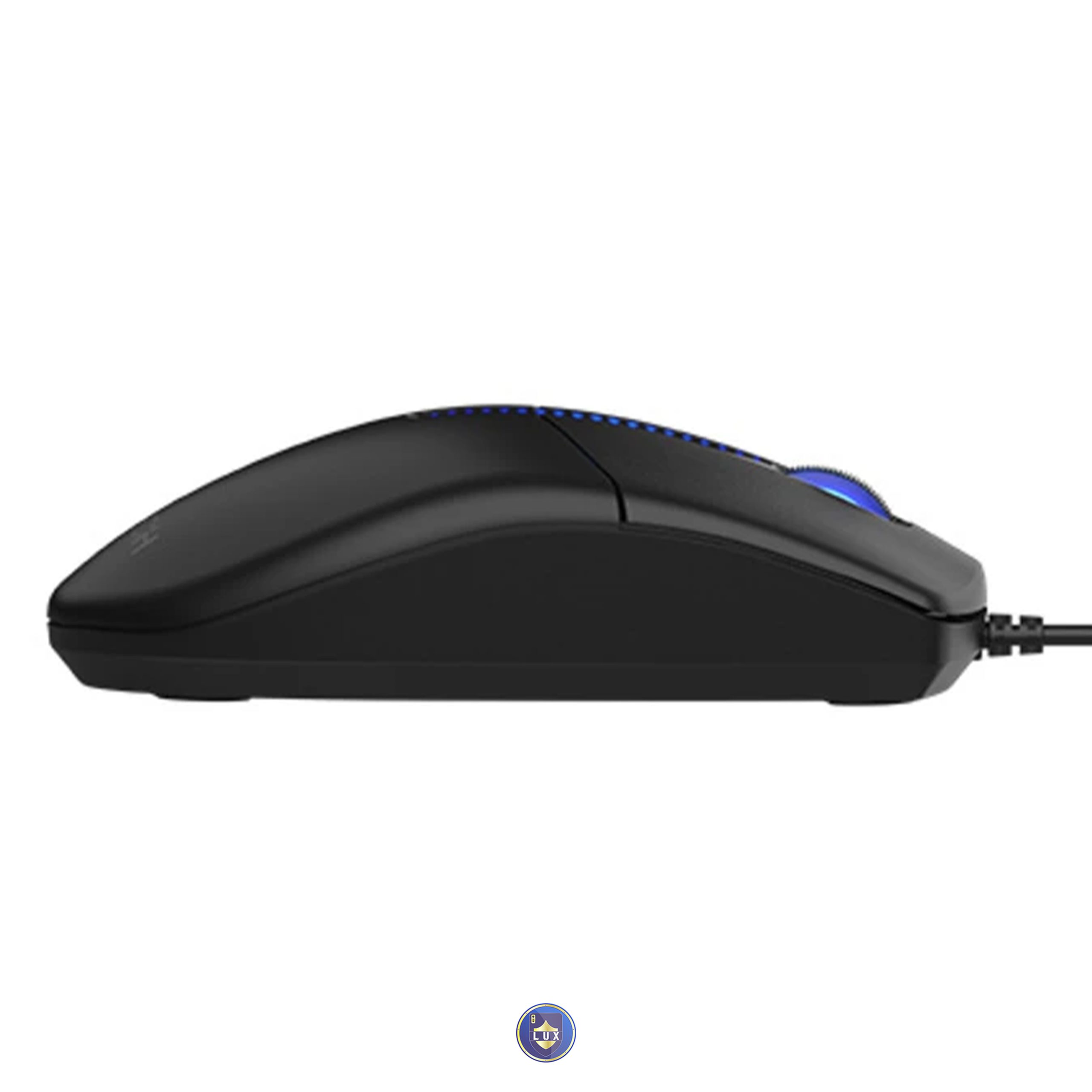 این موس مشکی رنگ، طراحی متقارن دارد و مناسب استفاده با هر دو دست است. ابعاد ۴۰×۸۰×۱۴۰ میلیمتر و وزن ۱۰۷ گرم، تجربهای راحت برای استفاده طولانیمدت فراهم میکند. کابل USB استاندارد اتصال آسان و بدون نیاز به نصب درایور را امکانپذیر میکند. نور پسزمینه آبی و چرخ اسکرول چندجهته، کاربری راحت در محیطهای کمنور و استفاده روزمره را تسهیل میکند.