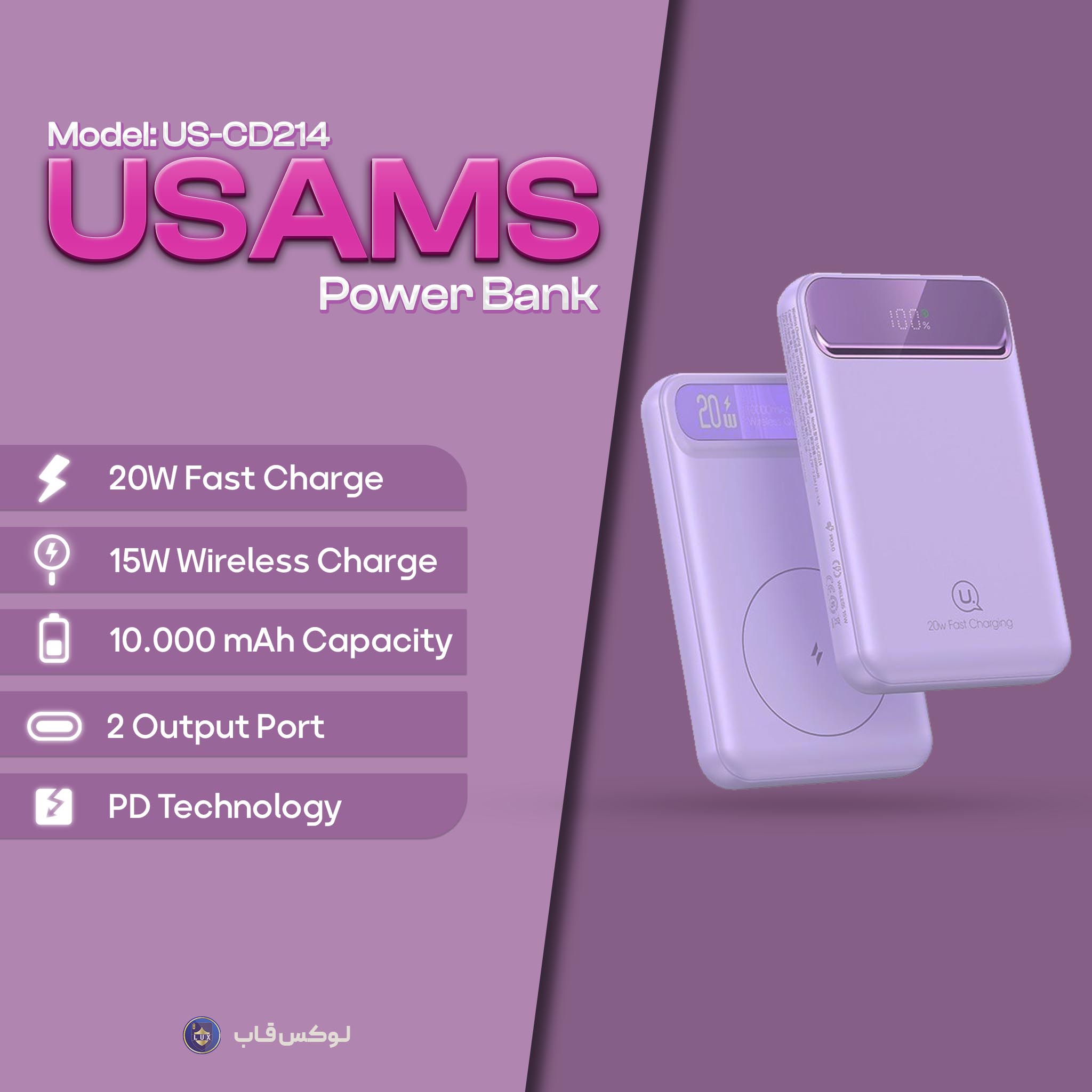 پاور بانک یوسمز اورجینال مدل US-CD214 با ظرفیت 10000 میلی‌آمپر ساعت، یکی از محصولات پرطرفدار برند معتبر USAMS است که با طراحی زیبا، رنگ خاص بنفش و عملکرد قابل‌اعتماد خود، جایگاه ویژه‌ای در میان کاربران به‌دست آورده است. این پاور بانک با ترکیبی از کیفیت، قدرت و سبک طراحی مدرن، انتخابی ایده‌آل برای استفاده روزمره، سفر و محل کار به‌شمار می‌آید.