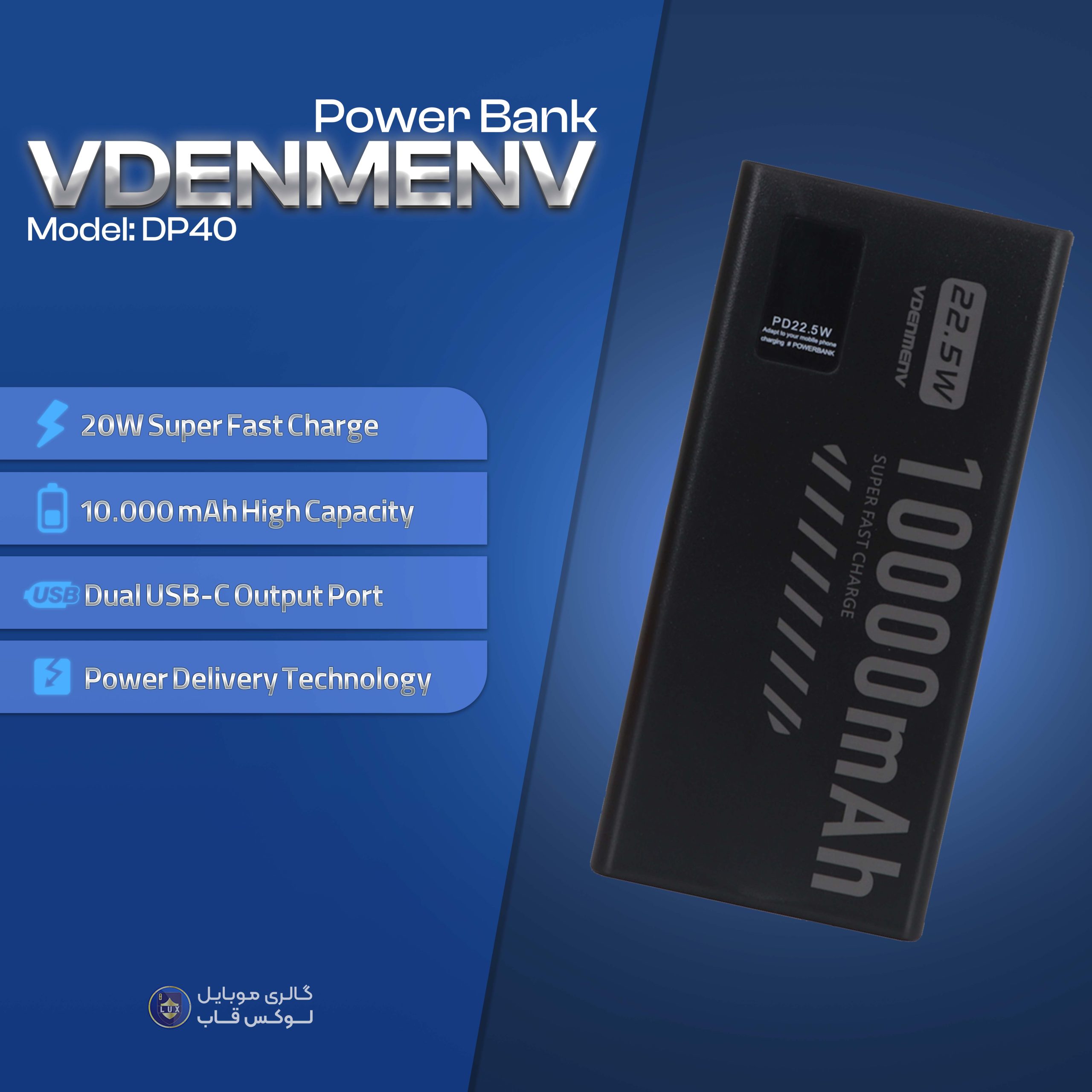 اگر بهدنبال یک پاور بانک قدرتمند، باکیفیت و بادوام هستید که طراحی زیبا و فناوری روز دنیا را با هم ترکیب کرده باشد، مدل VDENMENV DP40 انتخابی هوشمندانه برای شماست.